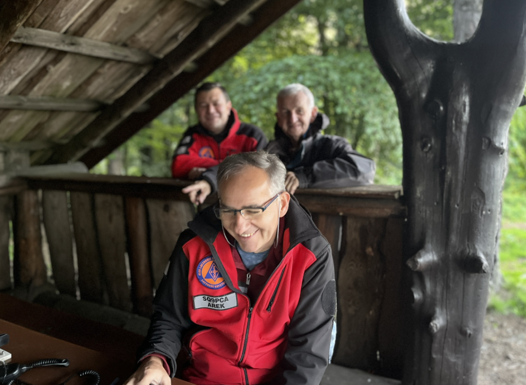 Po dotarciu na miejsce rozpoczęliśmy przygotowania: rozstawienie stanowiska pracy, montaż anten na pasma 2 m (144 MHz) i 70 cm (432 MHz), organizacja zasilania, oraz sprawdzenie sprzętu nadawczo-odbiorczego. I równie ważne – przygotowanie ogniska ![]()