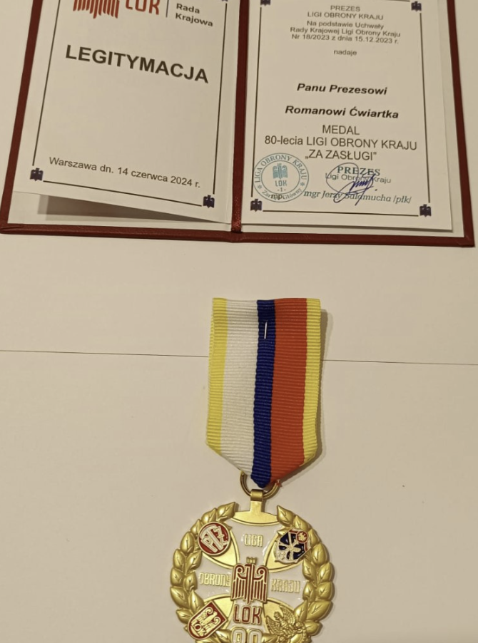 W trakcie uroczystości wręczono wyróżnienia „Za Zasługi dla Ligi Obrony Kraju” także dla przedstawicieli naszego klubu. Prezes Roman Ćwiartka oraz współzałożyciel i długoletni prezes Stanisław Król otrzymali okolicznościowe medale jubileuszowe, a wiceprezes Arkadiusz Noszka został odznaczony medalem brązowym. Te wyróżnienia są wyrazem uznania dla wkładu naszych członków w działalność klubu i współpracę z LOK.