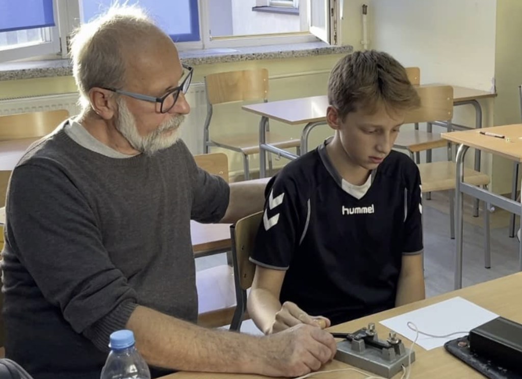 Pod okiem Mariusza SP9AMH, Staszka SP9SDR i Zbyszka SP9HPA uczniowie ćwiczyli telegrafię. Zaczynali od zakodowania wiadomości, a następnie nadawali ją za pomocą klucza sztorcowego lub łopatkowego. Wspierali się nawzajem, pomagali sobie w nauce, a nawet testowali prowadzących ![]()